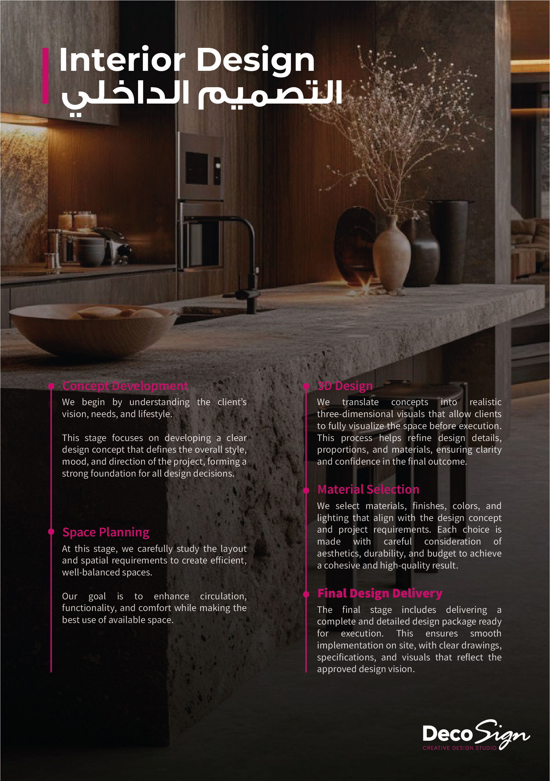 We believe that design is more than just visual appeal—it is a complete experience that begins with a clear concept and ends with results that enhance everyday life. Our approach is driven by precision, creativity, and thoughtful detailing, ensuring every project is executed with clarity and purpose.