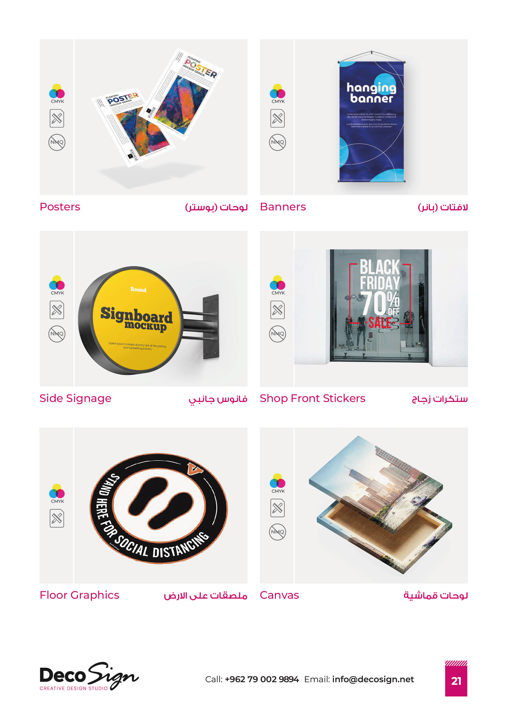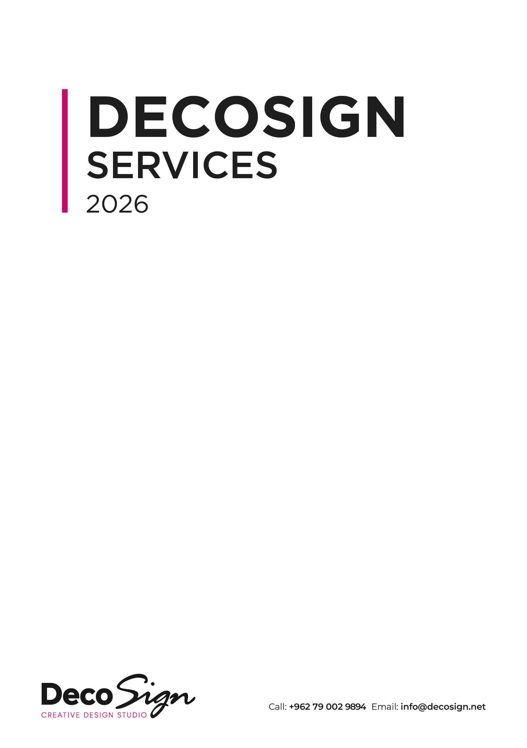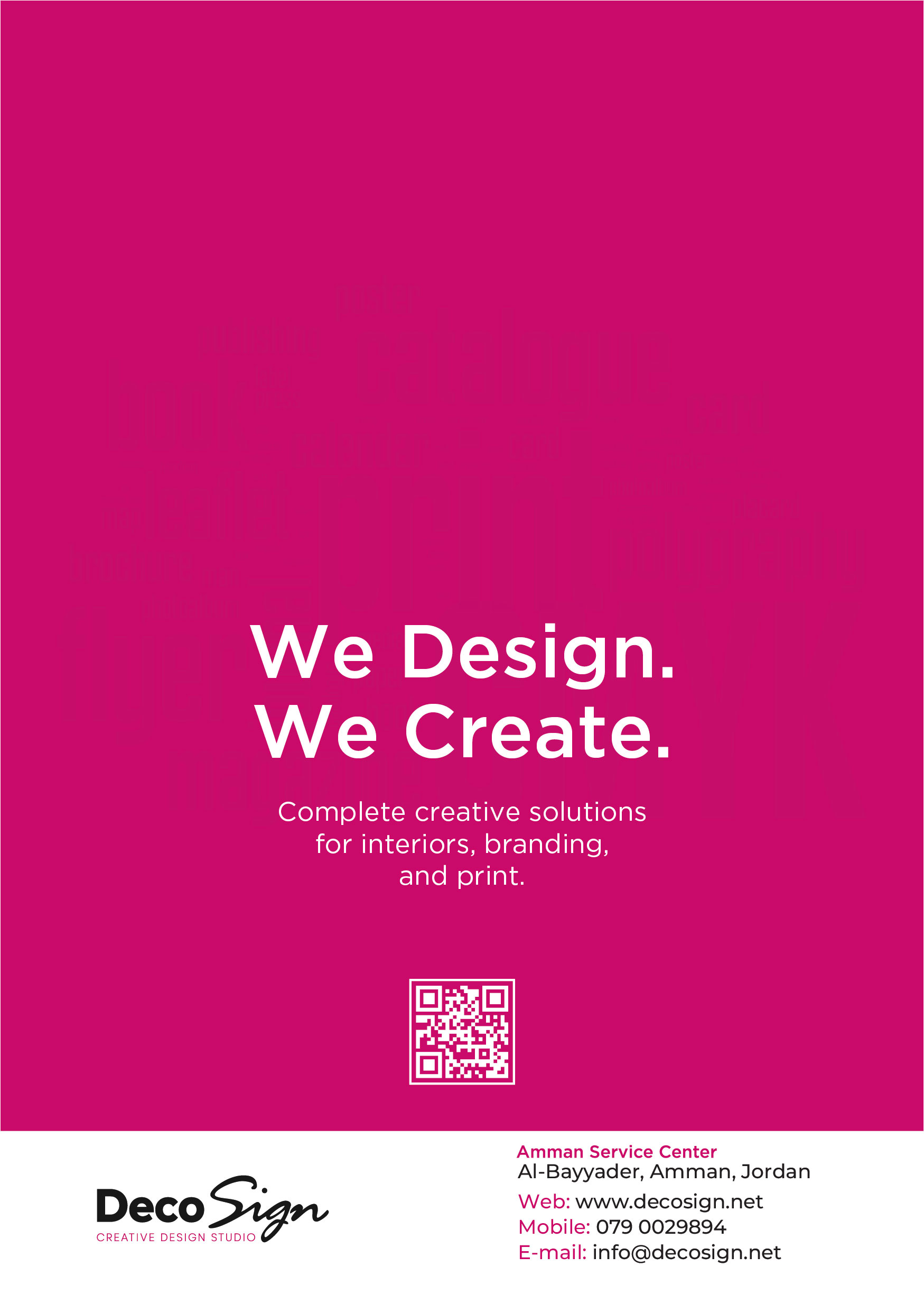 We are a creative design studio based in Amman, Jordan, established in 2014. We specialize in interior design, exhibition and retail fit-out solutions, print design, advertising signage, and paper-based printed materials, along with a wide range of creative design services.